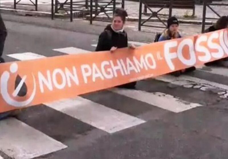 I giovani ambientalisti hanno esposto uno striscione con scritto: Non paghiamo il fossile".