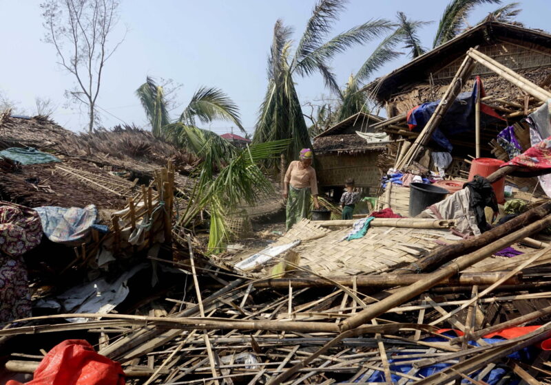 Centinaia di case e di rifugi sono andati crollati e la comunicazione è stata resa particolarmente difficile e onerosa in diverse parti del Paese. Alcune persone sono ancora disperse. A Sittwe, la capitale dello stato di Rakhine, dove molte persone vivono in zone costiere basse, le strade sono state bloccate da alberi sradicati e tralicci elettrici caduti.