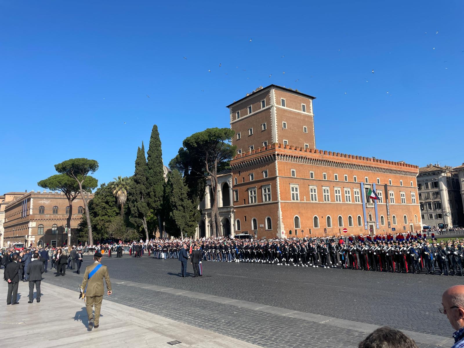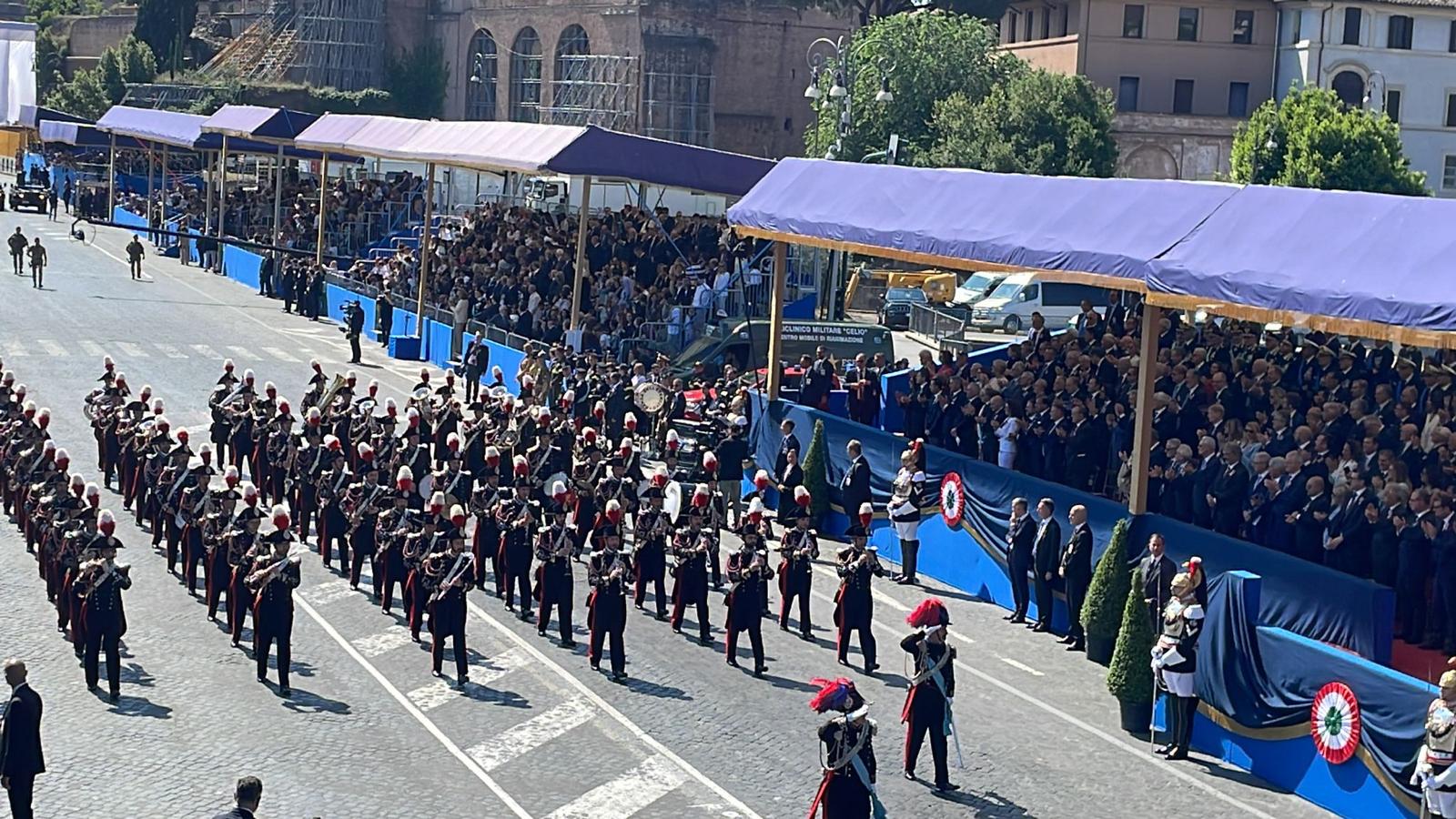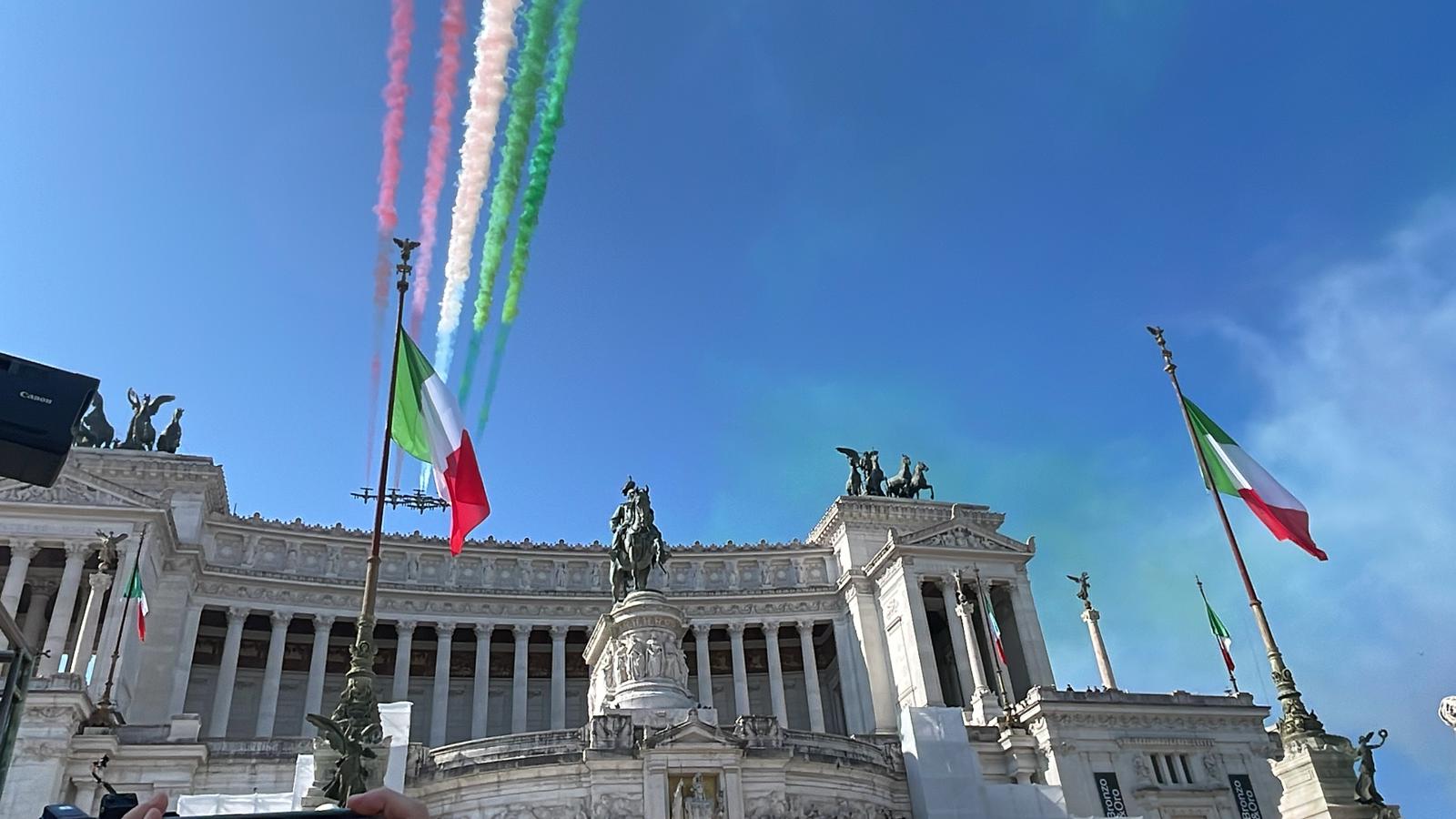 L'Altare della Patria ospita, come ogni anno, la Parata del 2 giugno di questo 2023 per le celebrazioni della Festa della Repubblica Italiana. Presenti tutte le alte cariche dello Stato, dalla presidente del Consiglio Giorgia Meloni al presidente del Senato Ignazio La Russa, dietro l'alta rappresentanza offerta dal Presidente della Repubblica Sergio Mattarella. Al Vittoriano, anche una folla di cittadini, accorsi per prendere parte alla festa nazionale.