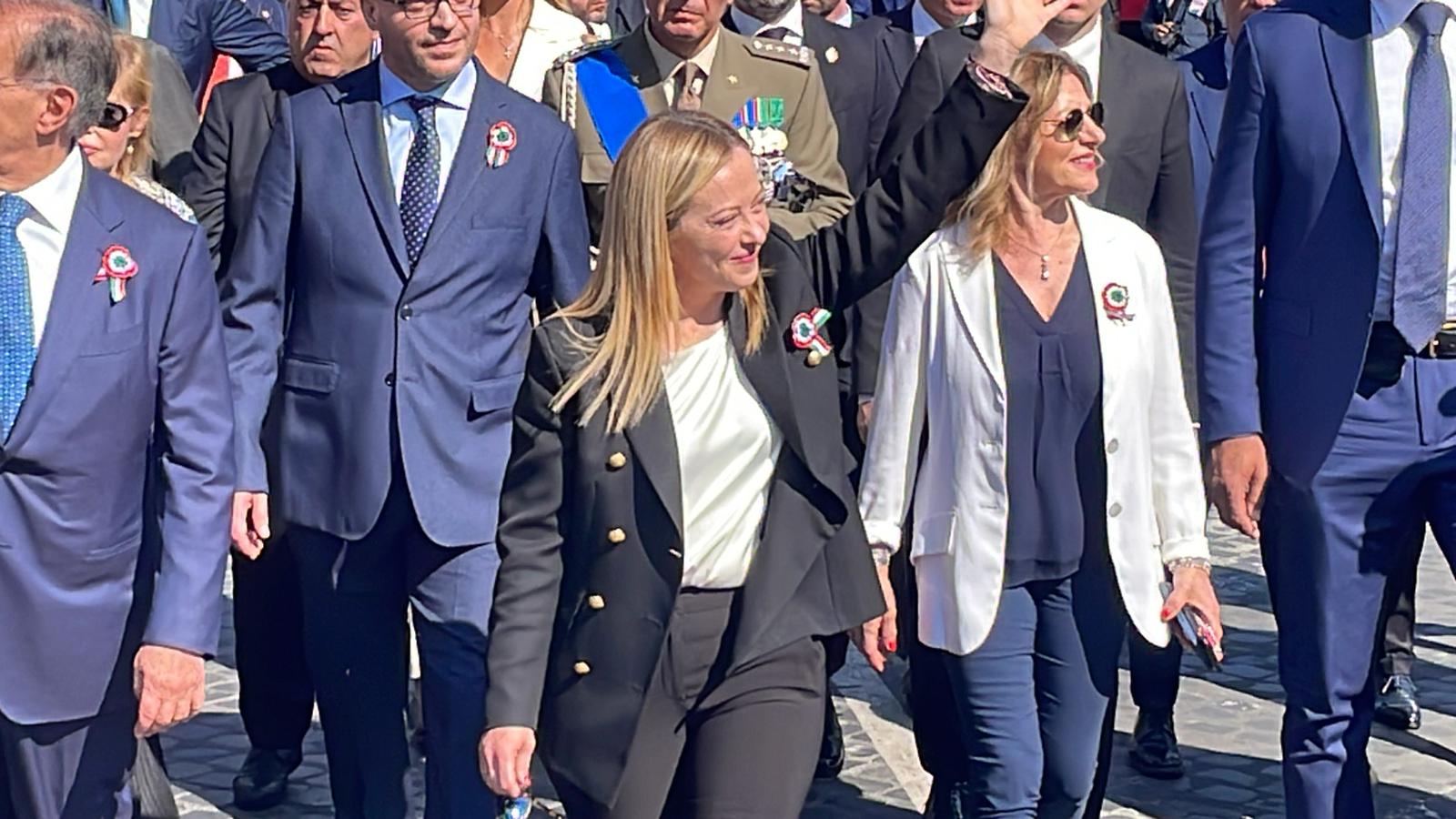 [bbvideo id=5532888]La presidente del Consiglio Giorgia Meloni percorre i Fori Imperiali verso la tribuna autorità per assistere alla parata, tra gli applausi. Il suo augurio è che il prossimo anno siano ancora di più a festeggiare.