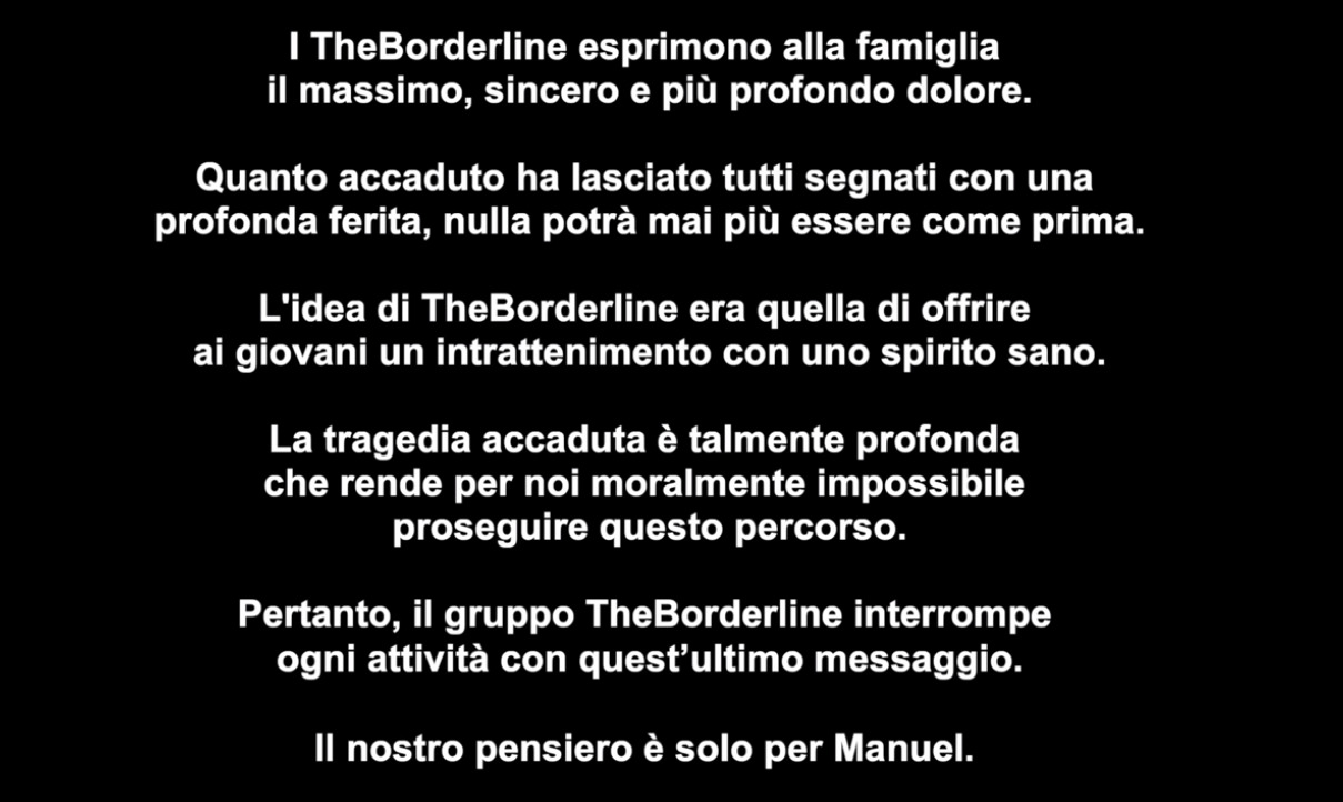 Il collettivo 'TheBorderline' ha preso una decisione forse in ritardo ma alla fine ha deciso di chiudere il canale. Una decisione che chiedevano in molti. La notizia è stata affidata al canale che tanto li ha resi famosi il comunicato di 'fine attività'. Una decisione che arriva a distanza di troppo tempo dal terribile incidente.