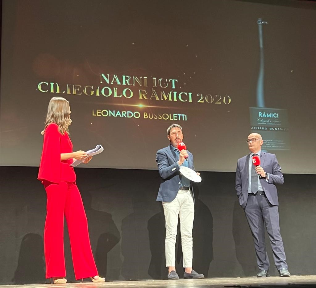 E' ufficiale. La cantina umbra Leonardo Bussoletti ottiene un nuovo ed importante riconoscimento a livello nazionale dal momento in cui il suo Narni Igt Ciliegiolo Ràmici 2020 si è portato a casa il premio speciale della Guida "I Mille Vini D’Italia 2023" e "Le Guide de L’Espresso" a cura di Luca Gardini. La targa è stata consegnata a Leonardo Bussoletti durante la cerimonia di premiazione che si è svolta presso il teatro Manzoni a Milano. In quell'occasione l'imprenditore ha dichiarato questo: