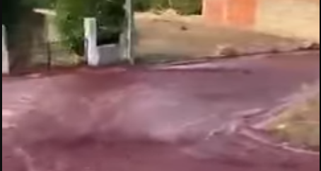 Inondazione di vino rosso nelle strade di Anadia, in Portogallo. Il video riprende un'onda rossa che invade le vie di Sao Lourenco do Bairro nella giornata di ieri.