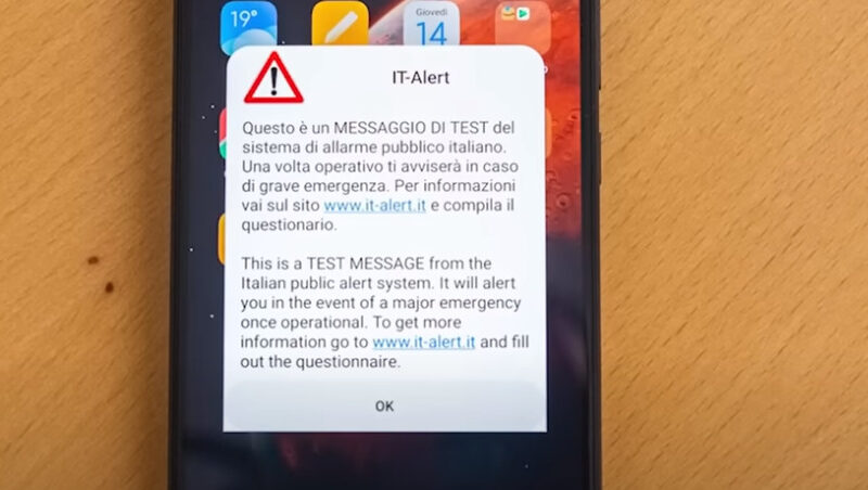 Non c'è motivo di preoccuparsi per chi riceve il messaggio di prova, basterà leggerlo per sbloccare il dispositivo. Il testo del messaggio sarà: "IT-Alert. Questo è un messaggio di prova del sistema di allarme italiano. Sarai avvisato in caso di grave emergenza.