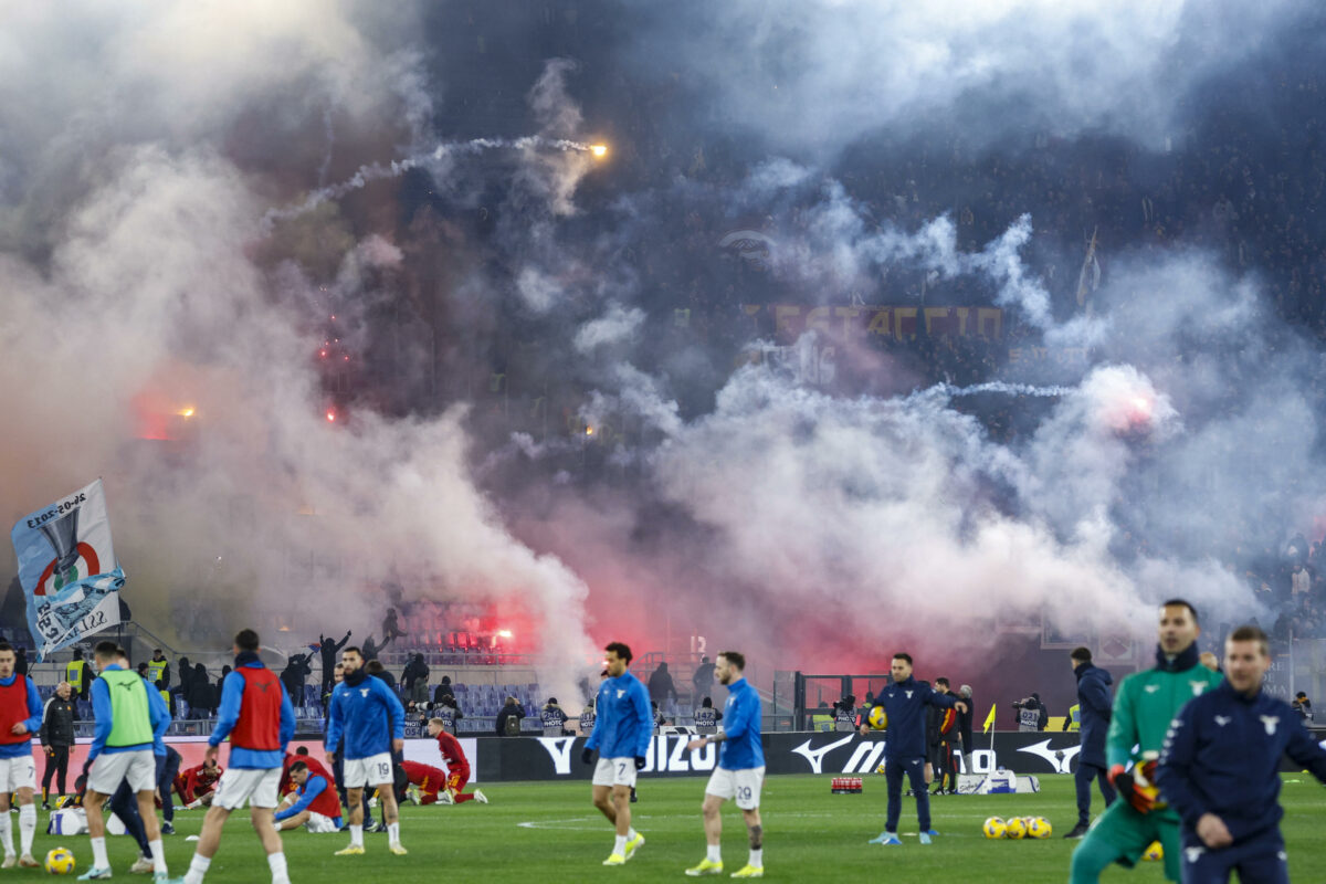 Prima della partita però da segnalare alcuni momenti di tensione tra la Tribuna Tevere e la Curva Sud protagonista, con uno "scambio di cortesie" non proprio romantico. Da entrambi i settori ad un certo punto è partita una serie di lanci tra fumogeni e petardi durata qualche minuto. Ad ora non si registra nessun ferito, con la situazione tornata in equilibrio dopo una decina di minuti.