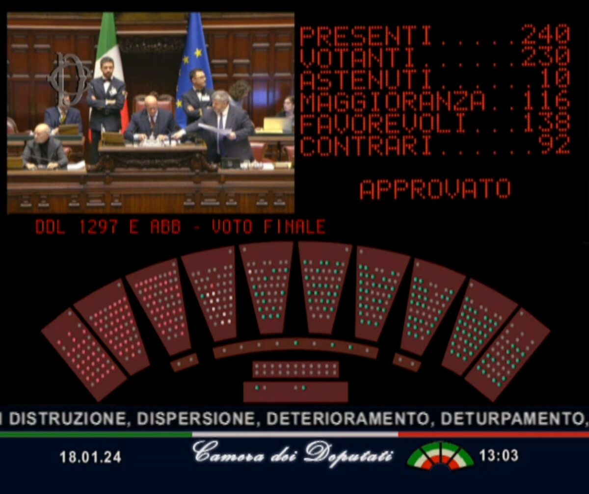 Il Ddl Ecoproteste diventa legge, l’aula approva in via definitiva il provvedimento voluto dal Governo e volto a inasprire le pene per chi imbratta, danneggia o distrugge beni culturali e paesaggistici. L’approvazione è arrivata nel primo pomeriggio di oggi con 138 voti a favore, 92 contrari e 10 astenuti ed è stata salutata con entusiasmo dal ministro della Cultura Gennaro Sangiuliano che ha definito la giornata di oggi una bella giornata per la cultura italiana.