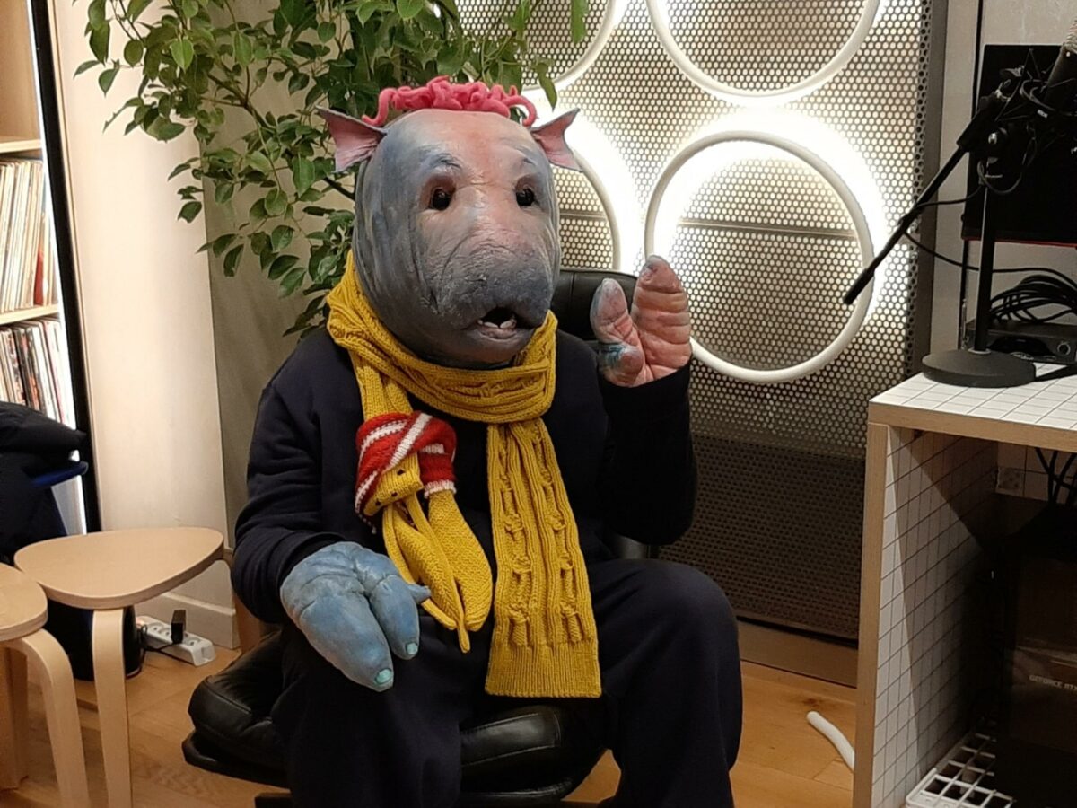 Le sue mani sono dotate di tre grandi dita ed in generale le sue dimensioni imponenti lo rendono abbastanza ingombrante ed impacciato nei movimenti all’interno dell’Ariston. Il suo abito elegante poi crea il giusto contrasto tra l’eccentricità del personaggio e il contesto in cui è calato.