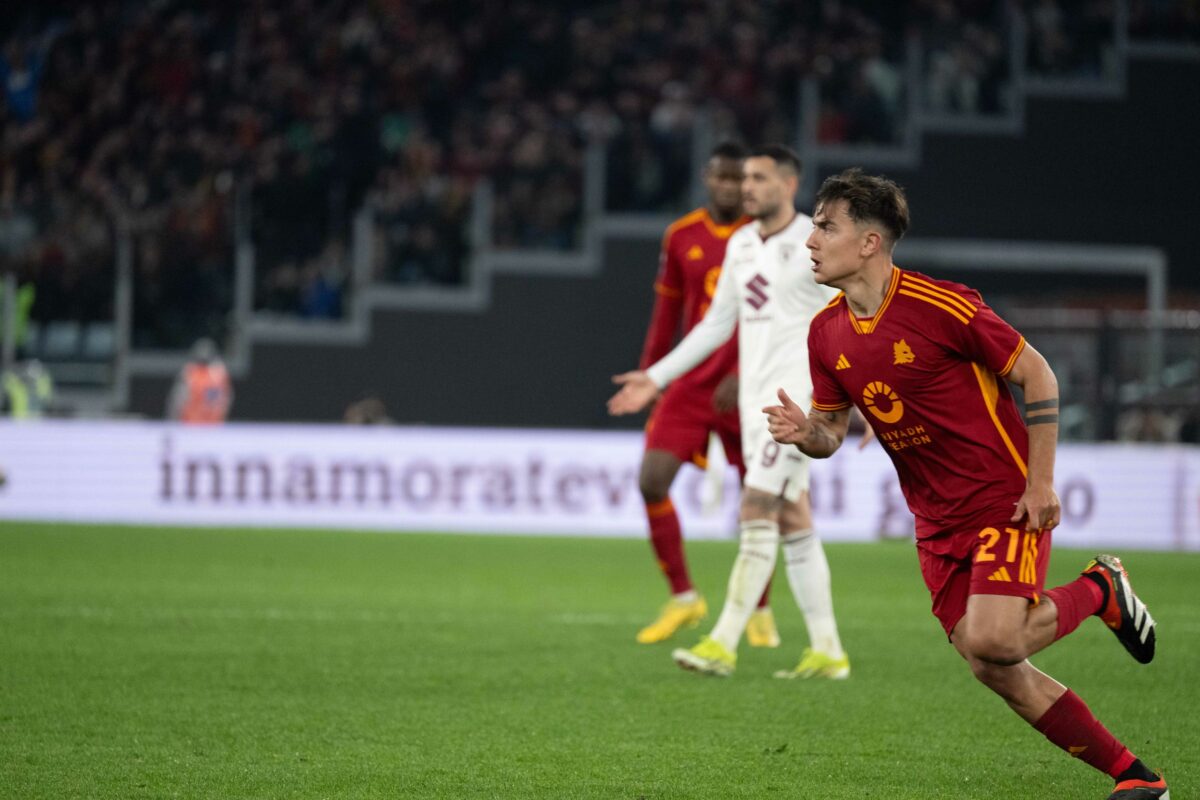 Il numero 21 ha alzato di gran lunga la qualità delle sue giocate e a beneficiarne è tutta la Roma. Nonostante in difesa la squadra giallorossa dia la sensazione di ballare sempre un po' troppo, tutto ciò è strano dato che oggi si gioca con un centrale difensivo in più, ora riescono ad uscire meglio con la palla rispetto al primo tempo e questo rende anche meno affannosi i disimpegni. La partita prende definitivamente la direzione della Roma quando Paulo Dybala sfruttando una palla meravigliosa di Lukaku entra in area e batte con un diagonale il portiere granata e fa esplodere l'Olimpico.